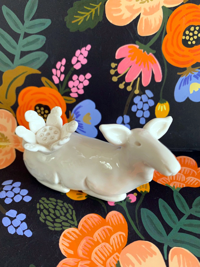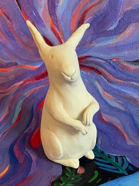 White Rabbit: When he first approached me I was so surprised. Why would such a handsome buck want to talk to me, I’m just a simple doe. Honestly, that sparkle in his eyes just made me swoon. My! he was the most dashing one in our Fluffle. But what would he see in little ole me? I’m just another shy little white rabbit with nothing much to look at really, although some say I do have nice ears and unusually long whiskers. But there we were, just looking at each other in a glowing silence. Later as we grazed together, all the while giving each other little adoring side glances, he popped the question and the rest is history ….