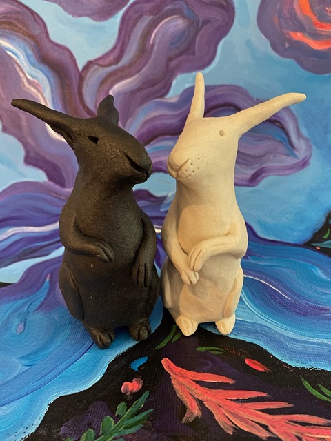 Black Rabbit: “Well when I first saw her in the forbidden garden, I Knew. I Just KNEW she was the one. Even though there were many others in our Fluffle, she dazzled. I can’t really say what it was about her but there it was … I was in Love. But what chances did I have against all those hopping handsome bucks, she could choose anyone? I am just one plain ole homely rabbit. Sure, I work hard, am friendly, helpful to my neighbours, and hang about with my pals just like everyone else. But hoppin’ big foot! I just HAD to talk to her. But what to say? Um… “Hi there, I love your ears (unimaginative) … Your whiskers are so long (oh my don’t say that!) do you come here often? (that is SO unoriginal), Want to go out hopping? Oh brother, I’m Hopeless … I didn’t have a chance in a hare … I’ll just had to hop up to her and hope for the best.
