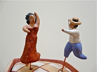 I take a slow ferry ride to my studio every month. This is where my ideas flow the fastest. Maybe it’s the short journey with strangers over water that inspires me or maybe it is that pause from familiarity. Settling into a seat by a window I make quick sketches of my passing thoughts and ideas and resist the temptation to edit. This new series Ups & Downs seems to satisfy my interest in architecture, animation, whimsical folk art, moving mechanical toys and getting my hands into something so malleable as clay.