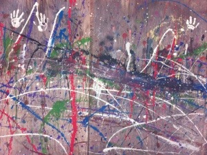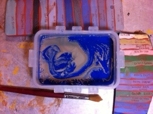Just kidding ~ I’m just mixing brilliant blue pigment into a white clay slip to use in my pottery.