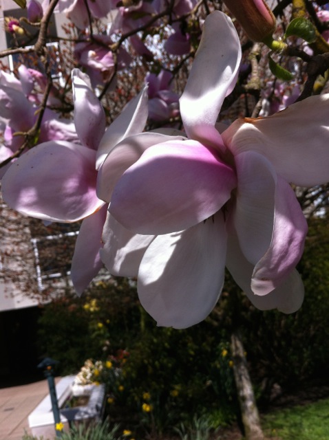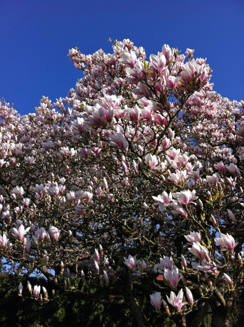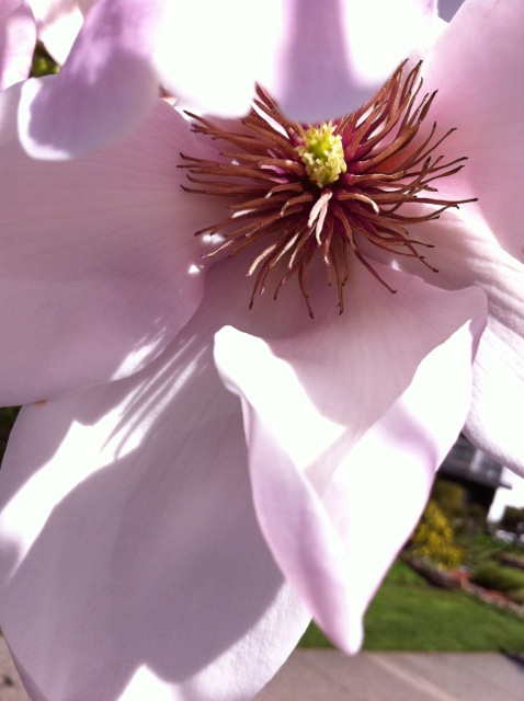 So, I am walking along a city block looking at all the amazing magnolia blossoms that are getting really serious about the coming Spring