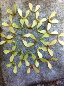 And who isn’t completely charmed when you encounter a little leaf just hovering in mid air, like magic … Can you see it? It’s that very green leaf in the middle of the rust coloured cedar foliage, It is really just dangling right in front of me, swaying in the breeze. Sure, we know the mechanics of it, that it has been caught on a fine spider strand but the chances of that strand catching that little leaf as it floated by ….. Pretty slim I’d say. Pretty magic, even in the scientific department..